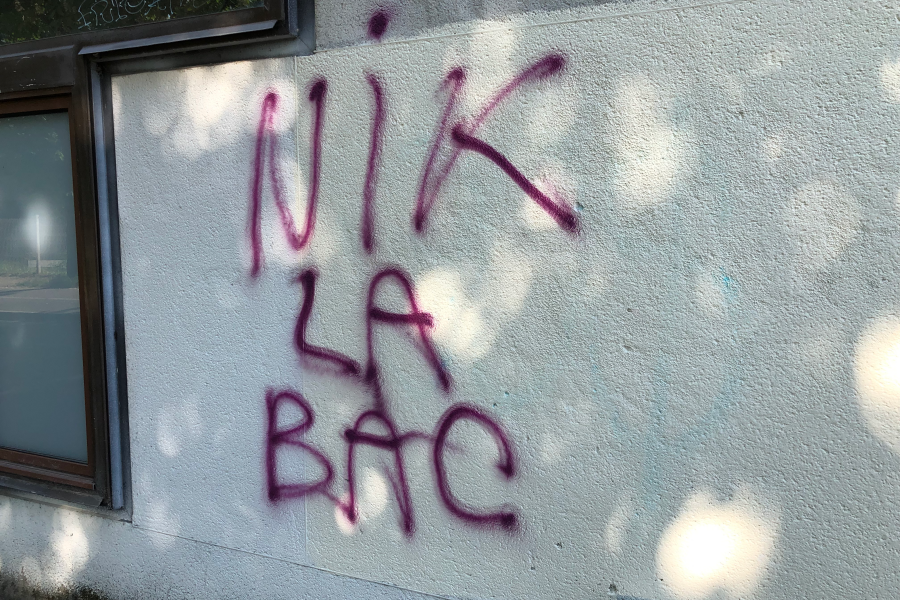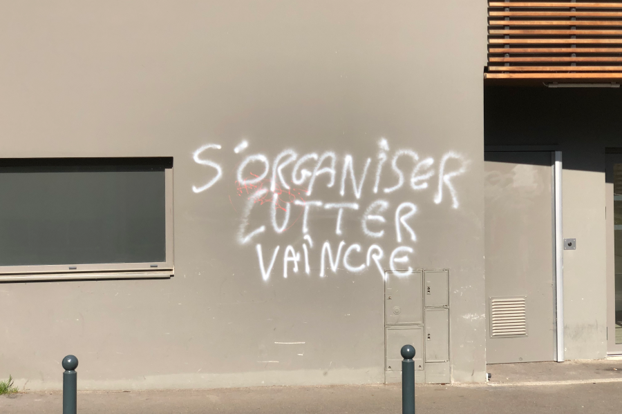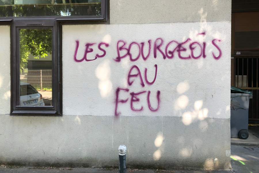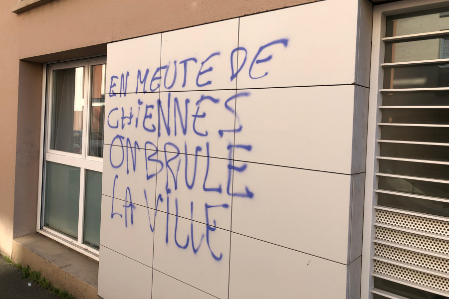 En remontant la rue de Dinan en direction des prairies Saint-Martin, de nombreux tags appelant à l'insurrection et à la violence ont recouvert les murs des immeubles du quartier.