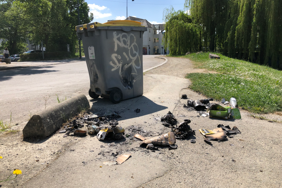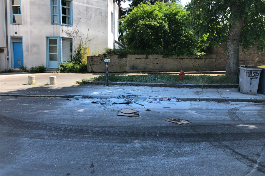 Nettoyés aux aurores ce matin par les services de la ville, la chaussée et les trottoirs portent encore les séquelles du feu déclenché par les manifestants dans le secteur du Vieux Saint-Etienne, à l'angle de la rue de Dinan et de la rue de l'Echange. Le feu s'est légèrement propagé à un espace vert dont la ganivelle a été en partie brûlée. Ce matin, quelques passants, médusés, constataient les dégâts.